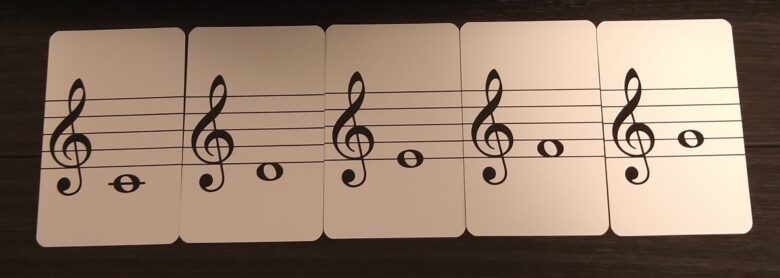 このカードを使って、教本に出てくる初めての音符を確認します(^^)