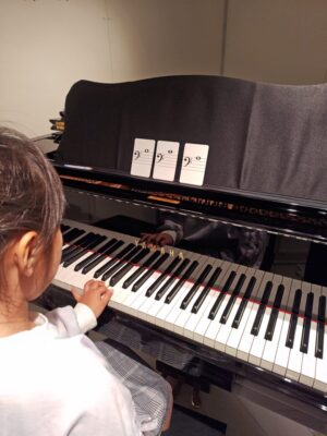 ピアノを始めて約8ヶ月、小学2年生のRちゃんは音符カードを使って譜読みの練習をしています♪